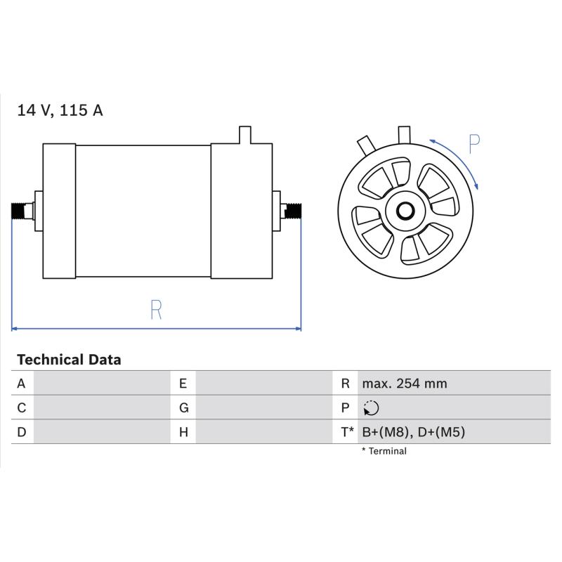 • Courant de charge de l'alternateur (A) : 115 A