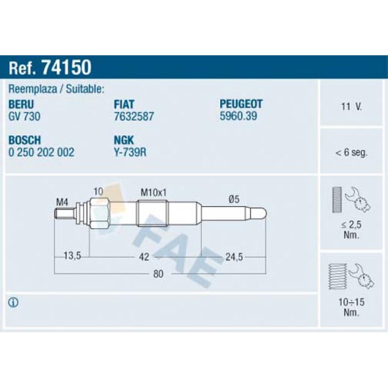Bougie de préchauffage FAE - 74150
