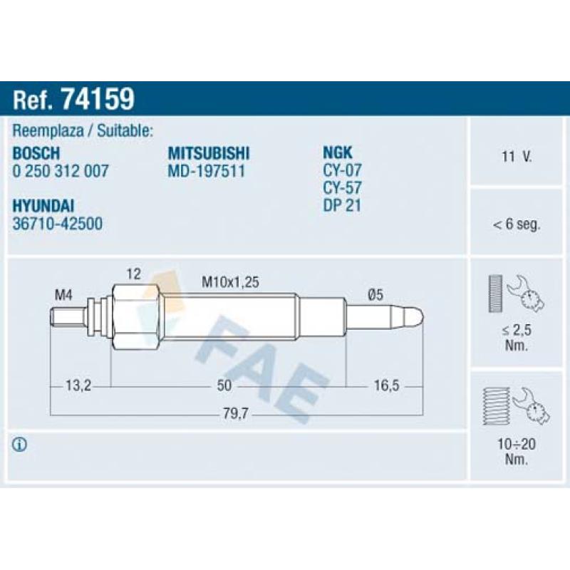 Bougie de préchauffage FAE - 74159