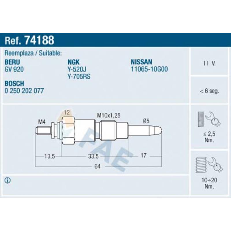 Bougie de préchauffage FAE - 74188