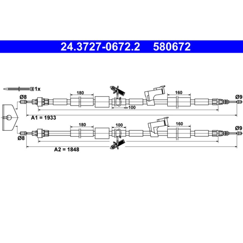 Tirette à câble, frein de stationnement ATE - 24.3727-0672.2