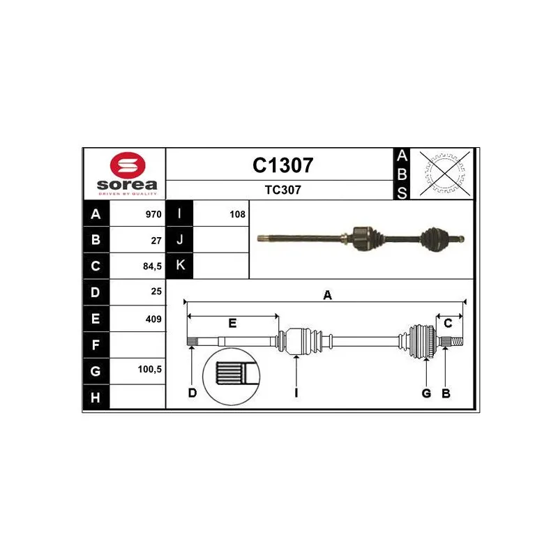 Jeu de joints-soufflets, arbre de commande avant