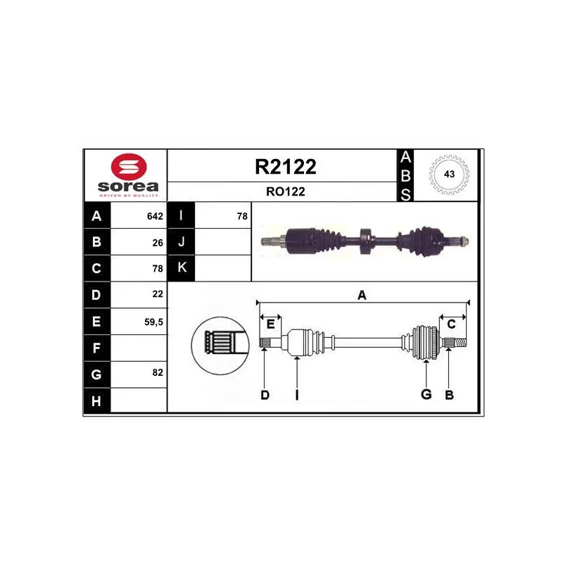 • Nombre de dents, anneau ABS : 43