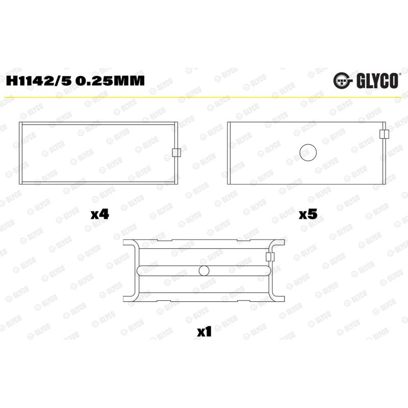 Coussinet de vilebrequin GLYCO - H1142/5 0.25mm