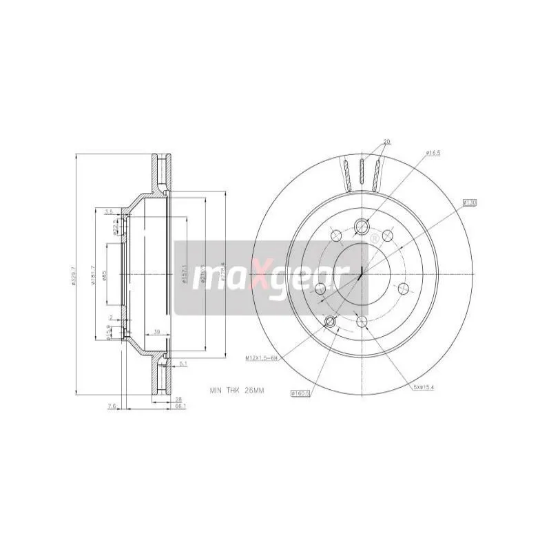 Jeu de 2 disques de frein arrière MAXGEAR - 19-1833MAX