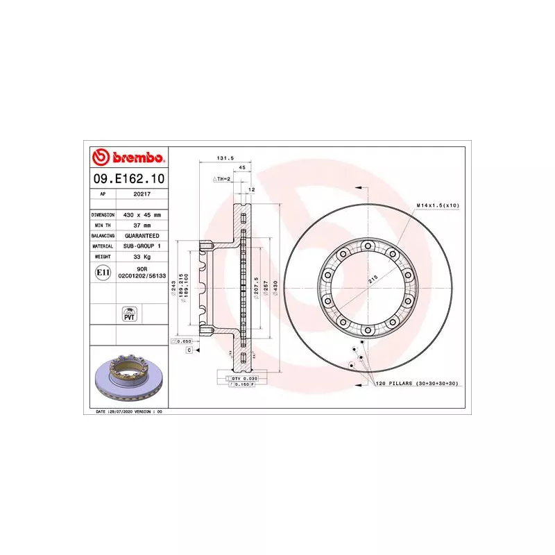 • Épaisseur du disque de frein : 45 mm
