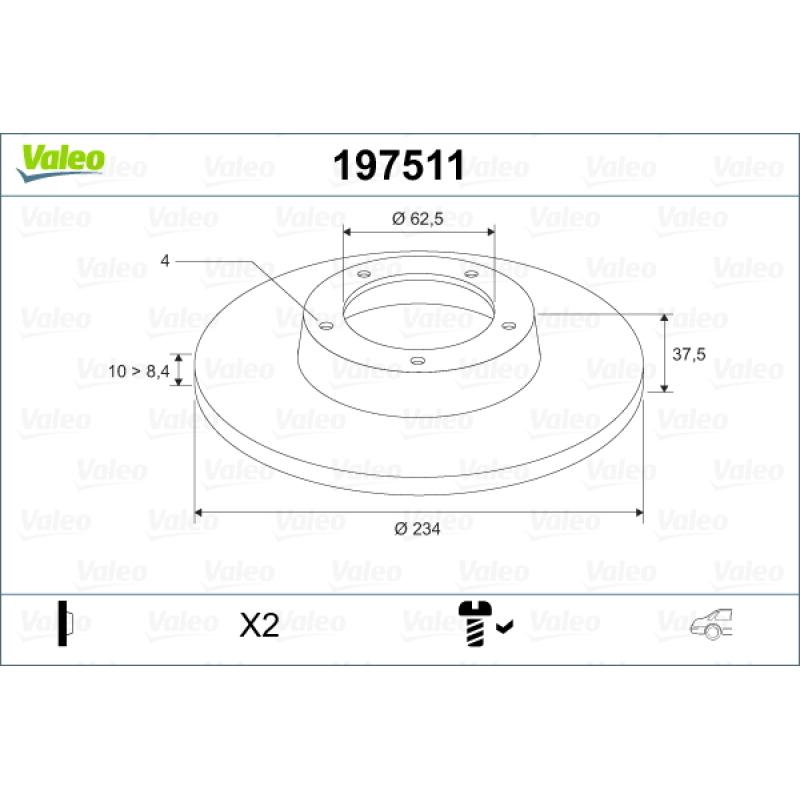 Jeu de 2 disques de frein arrière VALEO 197511 - Visuel 0 Jeu de 2 disques de frein arrière VALEO 197511 - Visuel 1
