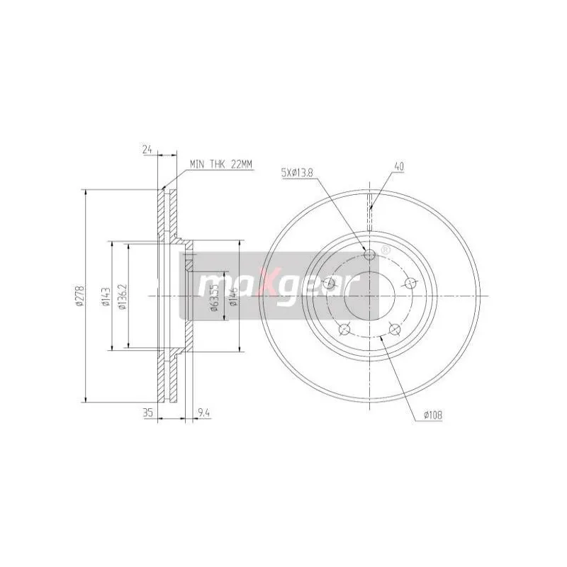 • Épaisseur du disque de frein : 24 mm