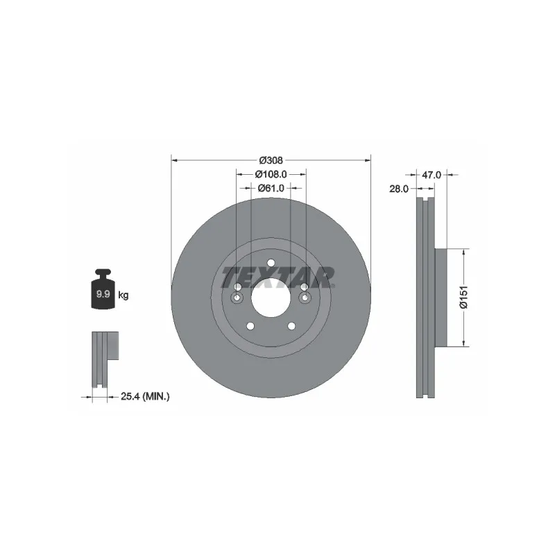 • Diamètre extérieur : 308 mm