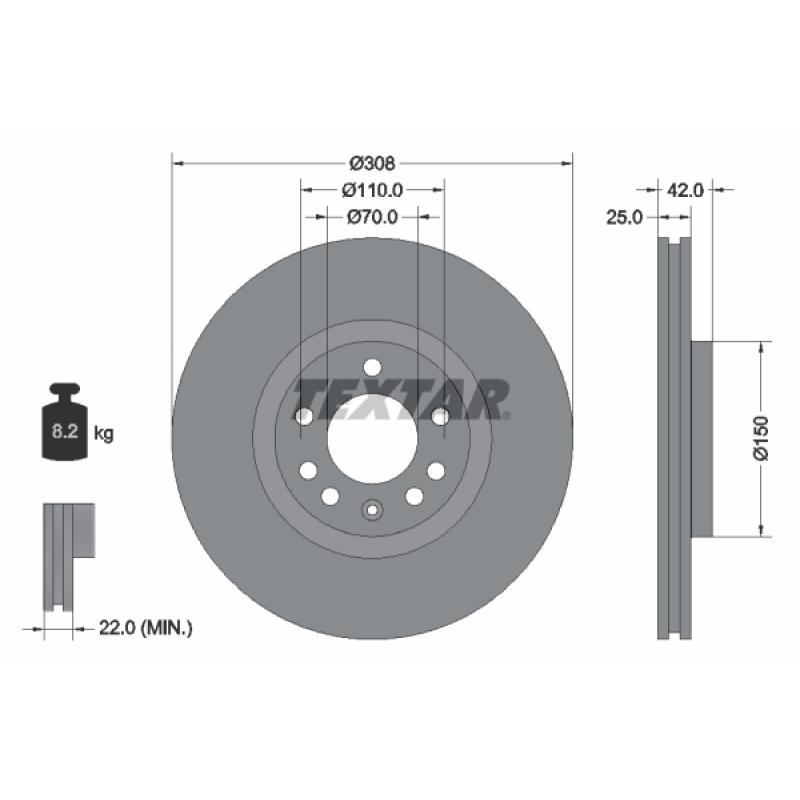 • Épaisseur du disque de frein : 25 mm