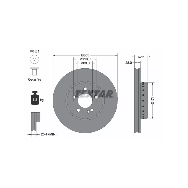 • Épaisseur du disque de frein : 28 mm