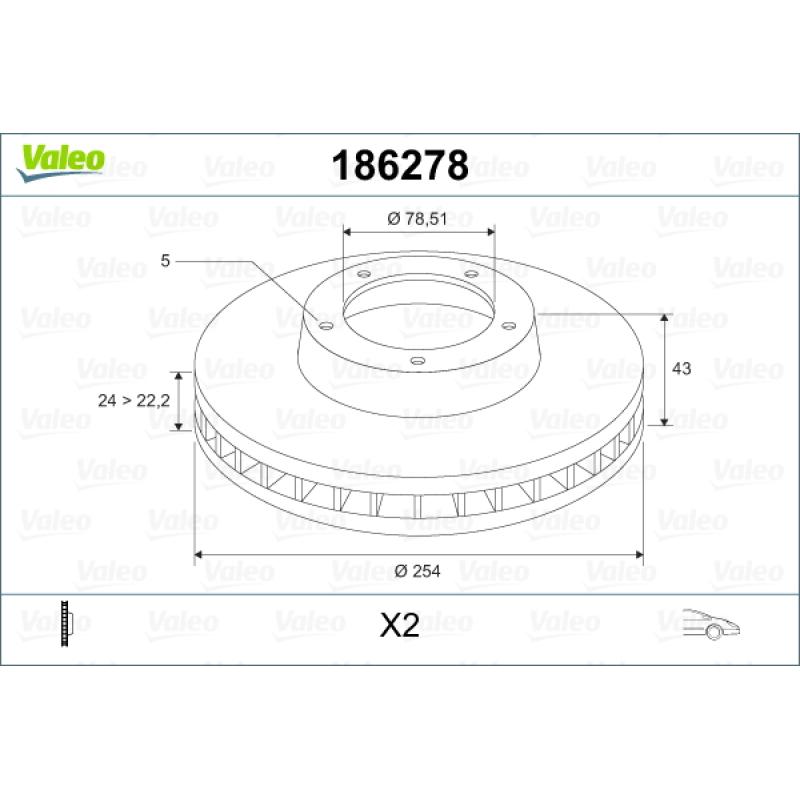 Jeu de 2 disques de frein avant VALEO - 186278