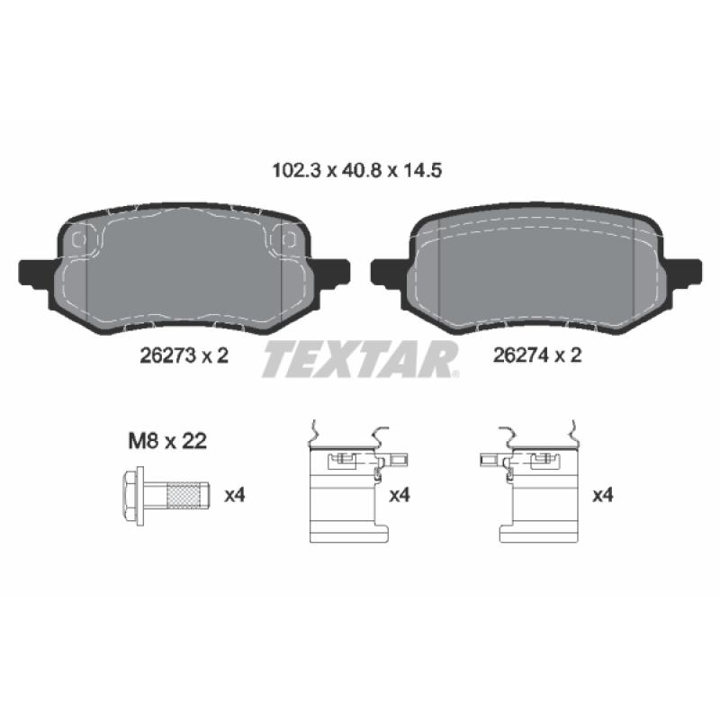Jeu de 4 plaquettes de frein arrière
