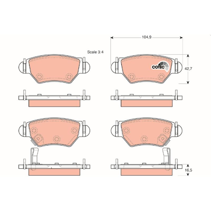 Jeu de 4 plaquettes de frein arrière