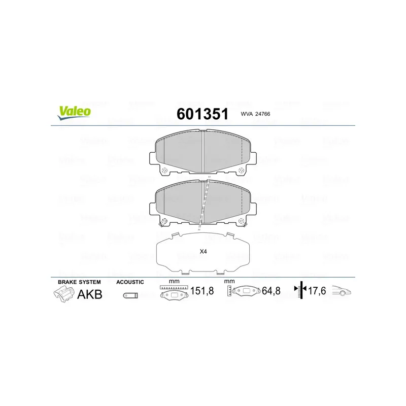 Jeu de 4 plaquettes de frein avant VALEO - 601351