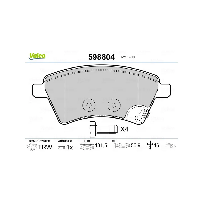 Jeu de 4 plaquettes de frein avant VALEO - 598804
