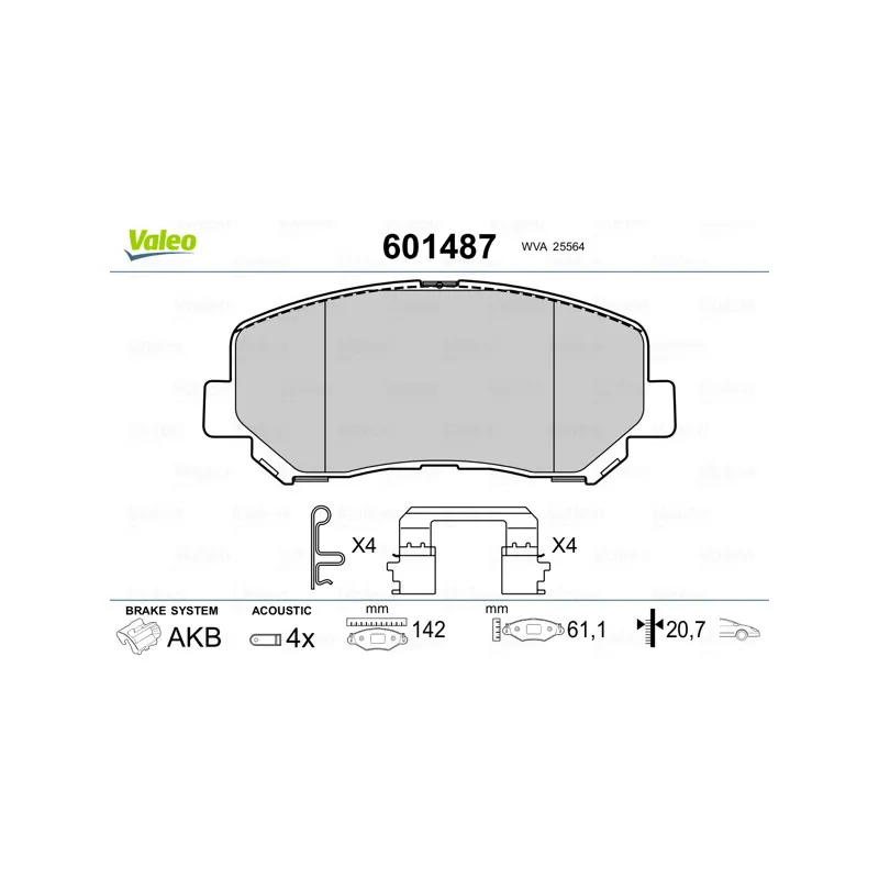 Jeu de 4 plaquettes de frein avant VALEO - 601487