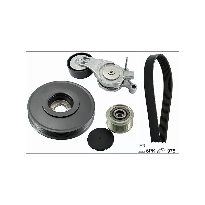 1x Tendeur, courroie trapézoïdale à nervures 10-07691x Poulie roue libre, alternateur 15-32891x Poulie, vilebrequin 15-70071x Courroie trapézoïdale à nervures 29-6PK976