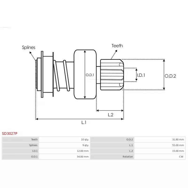 Embrayage à roue libre, démarreur AS-PL OEM 3616042300