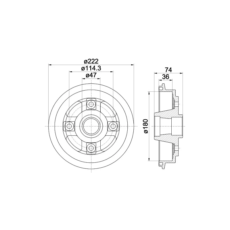 • Diam. ext du tambour de frein : 222 mm