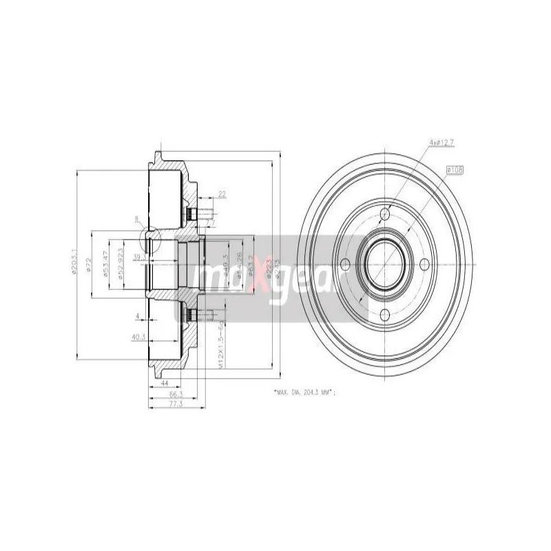 • Cotes max.de rectification de tambour de frein : 204,3 mm