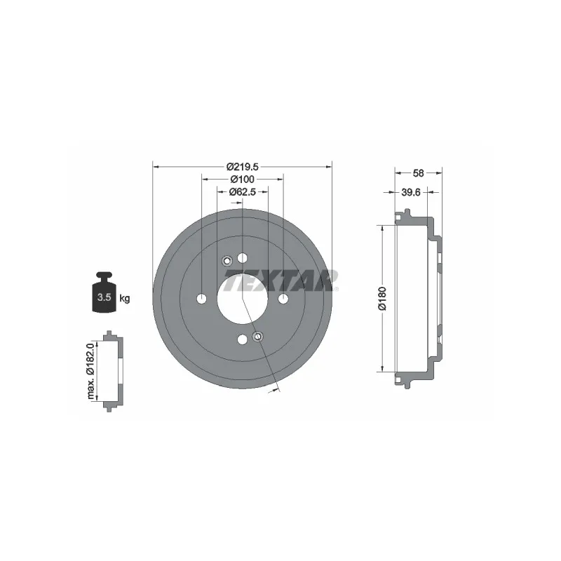 • Cotes max.de rectification de tambour de frein : 182 mm