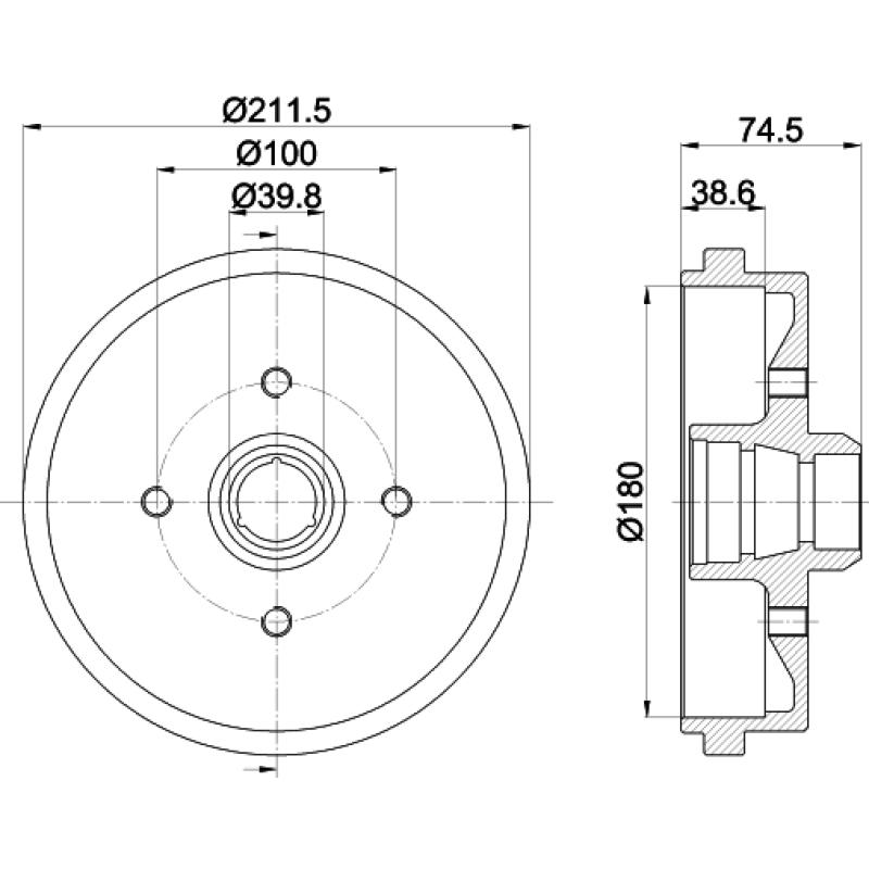 • Diamètre intérieur du tambour de frein : 180 mm