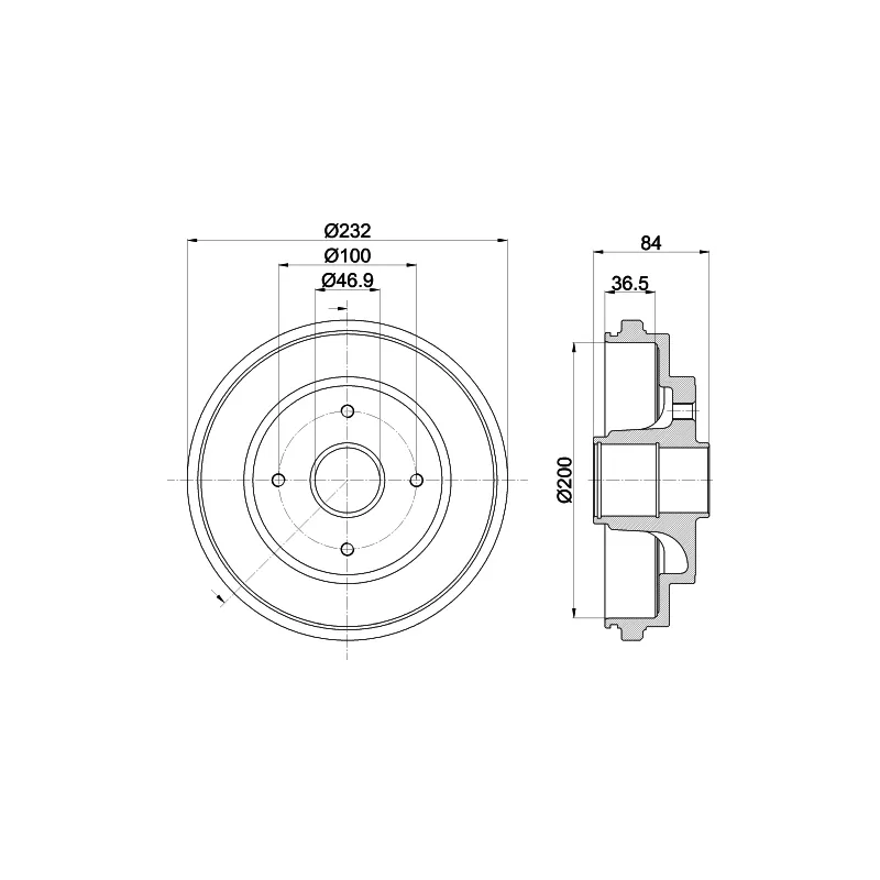 • Diamètre extérieur du tambour de frein : 232 mm