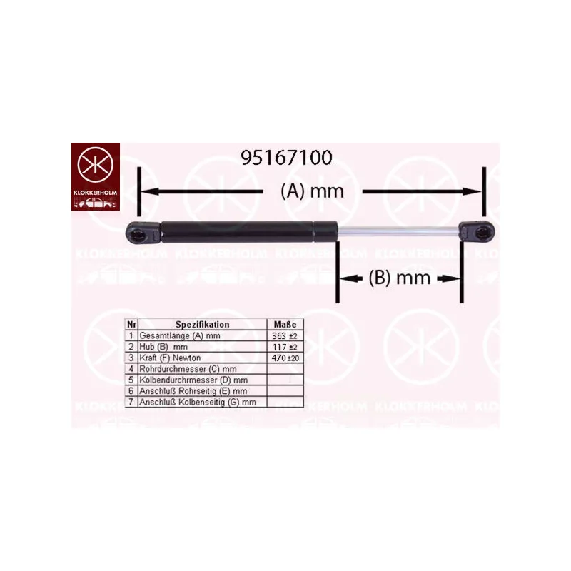 Vérin de hayon, de coffre KLOKKERHOLM - 95167100